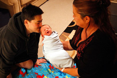 Thomas trong lần sinh đứa con thứ ba ngày 25.1.2010