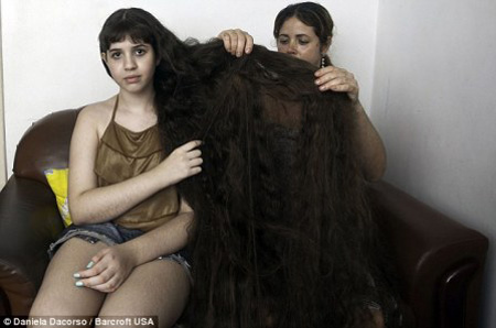 Kể từ khi sinh ra đến nay, cô bé Natasha Moraes de Andrade sống tại một thị trấn nghèo ở Rio De Janeiro (Braxin) chưa một lần cắt tóc. Đó là lý do tại sao, mới 12 tuổi, cô bé đã sở hữu mái tóc dài 1,57m, chỉ kém hơn một chút so với chiều cao cơ thể cô bé.