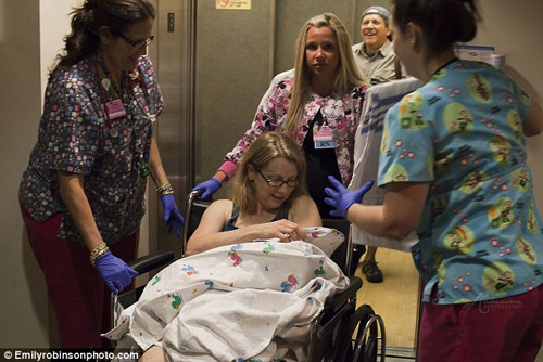 Beth Cavaretta được đặt trên xe lăn để thực hiện ca sinh đẻ ngay ngoài bệnh viện.