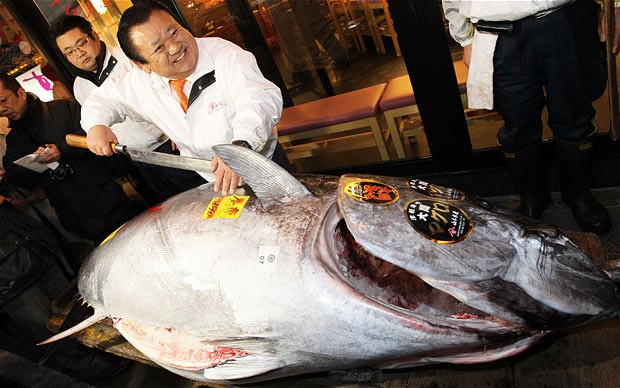 Con cá ngừ vây xanh nặng 269 kg được bắt tại vùng biển ngoài khơi phía đông bắc Nhật Bản. Giá bán của nó đã vượt qua kỷ lục của con cá ngừ đắt nhất thế giới đã được bán tại phiên đấu giá năm ngoái (con cá ngừ nặng 342 kg được bán với giá 32,5 triệu Yên).